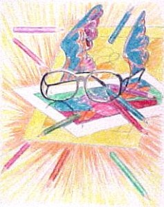 Here’s my most recent. It’s meant to convey the feeling of doing artwork. It’s 16×20, in colored pencil, as always.