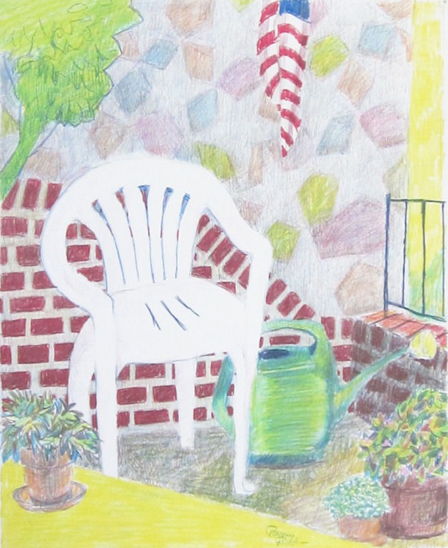 I’ve explored the idea of empty chairs before. The drawing “Louie’s Spot”, is one.