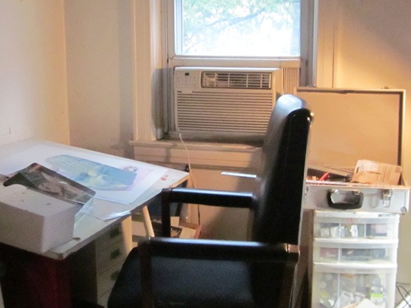 Somehow, the disorganization hasn’t kept me from efficiently doing art…in fact, I think it helps. I’ve seen studios where the colored pencils are meticulously kept in color coordinated containers. I think it would be very inefficient to have to stop one’s creative train of thought, to think of finding the exact spot where the pencil goes.