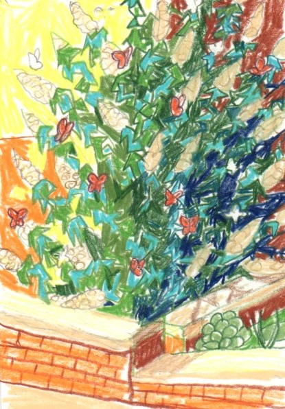 What I do have to do to make the butterflies stand out, is what is called “negative drawing”. You do the front first, and work around that to fill in the background drawing. If I were a more positive person, I suppose I would say it’s a challenge. But since I’m not, I’ll tell you it’s a pain in the ass. Ah, what I go through for my art.