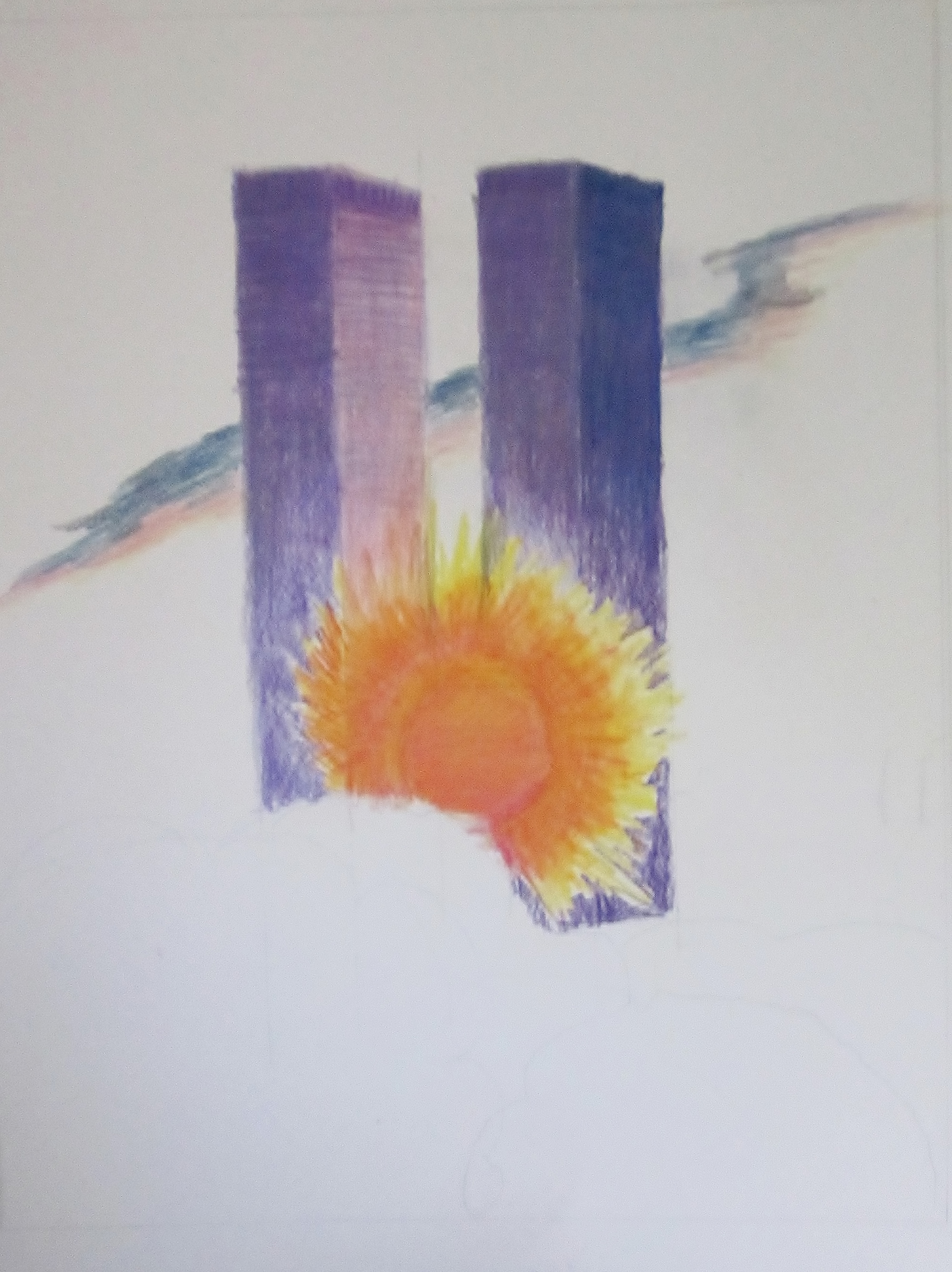 Which brings me to the picture I’m working on. I’m a little puzzled about how to handle the trees. At sunset, you really only see the sillhouette of the trees, but somehow, just dark blobs don’t do it. So, here it stands, now.