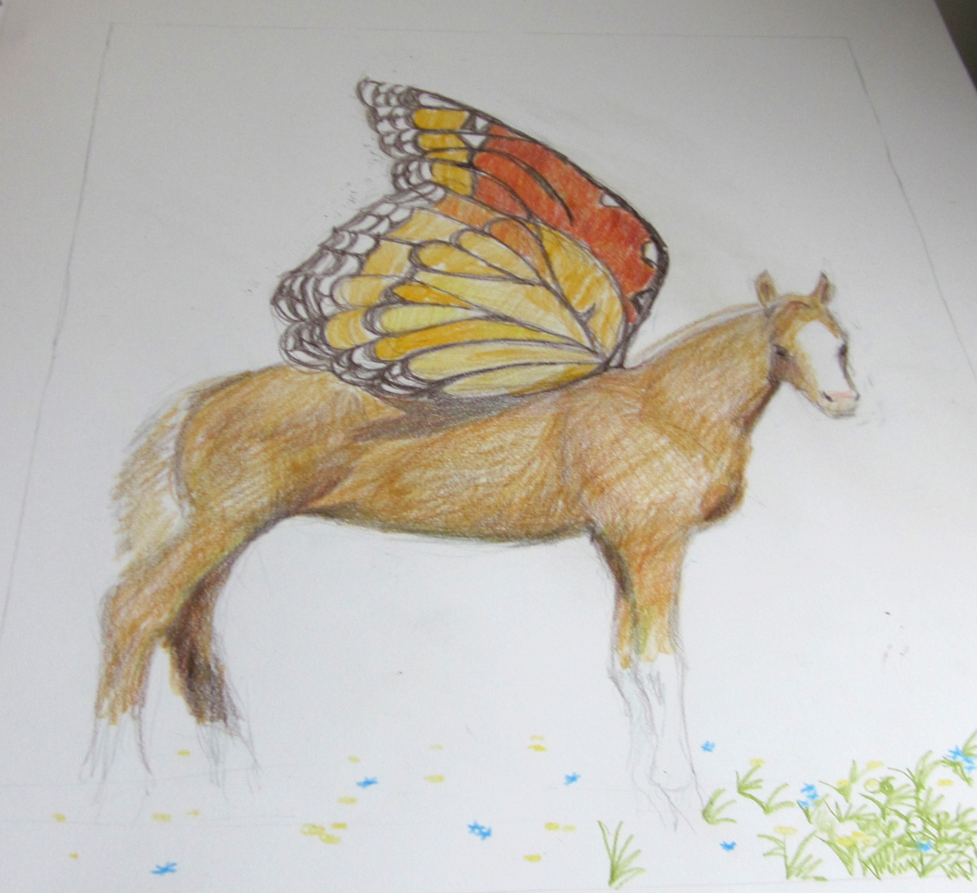 I’ve been working pretty steadily on the project for the college students, and frankly, I’m getting really bored with it. There’s not too long to go with it, so I decided to take a break and work on the winged foal. Here’s where it stands: