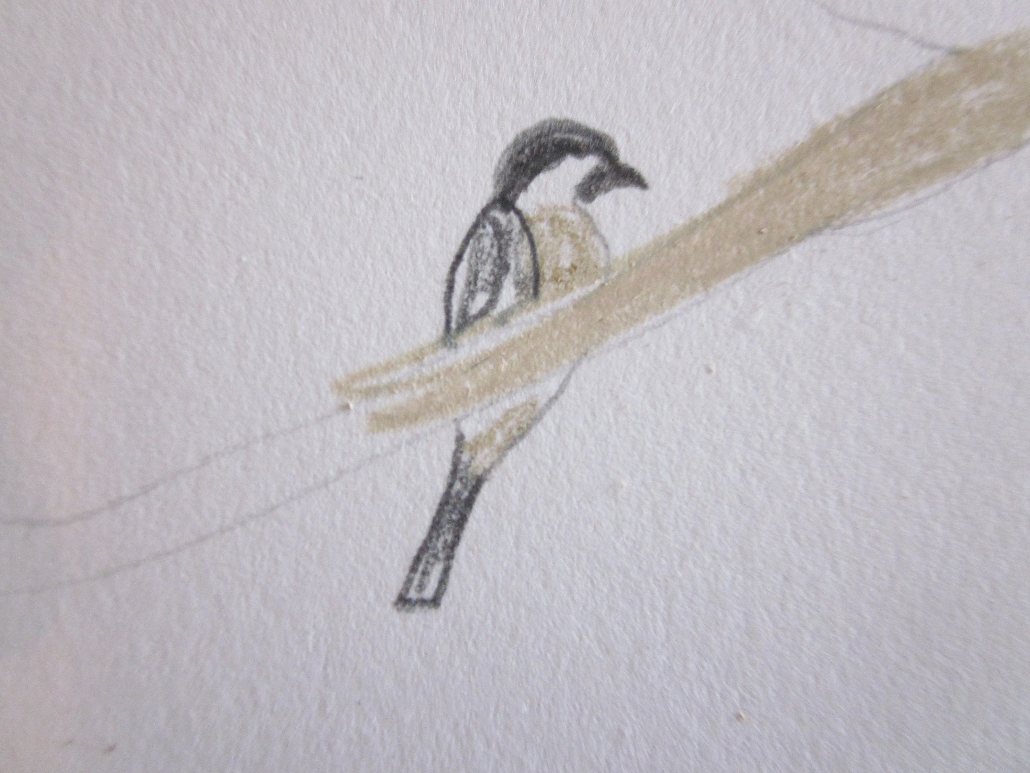 Here’s the progress of “Making Peace with December”, chickadees and all.