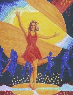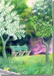 I’m working on “Making Peace with January”, and so far, it’s very pale…it would not show up very well. I’m doing glazes with the colored pencil, building up to what I call a Pisces Gray, made up of a lot of colors, but the eye blends them into gray. It’s a livelier gray than just using gray.