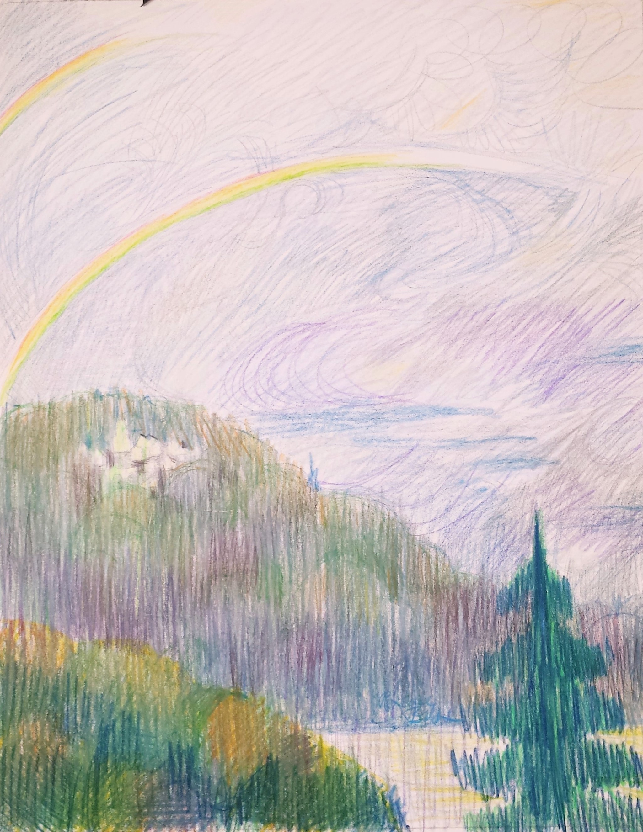 If I project an intention of good times into this drawing as well? Then I certainly can call it: “Rainbow Over Danbury”. So then, I will.