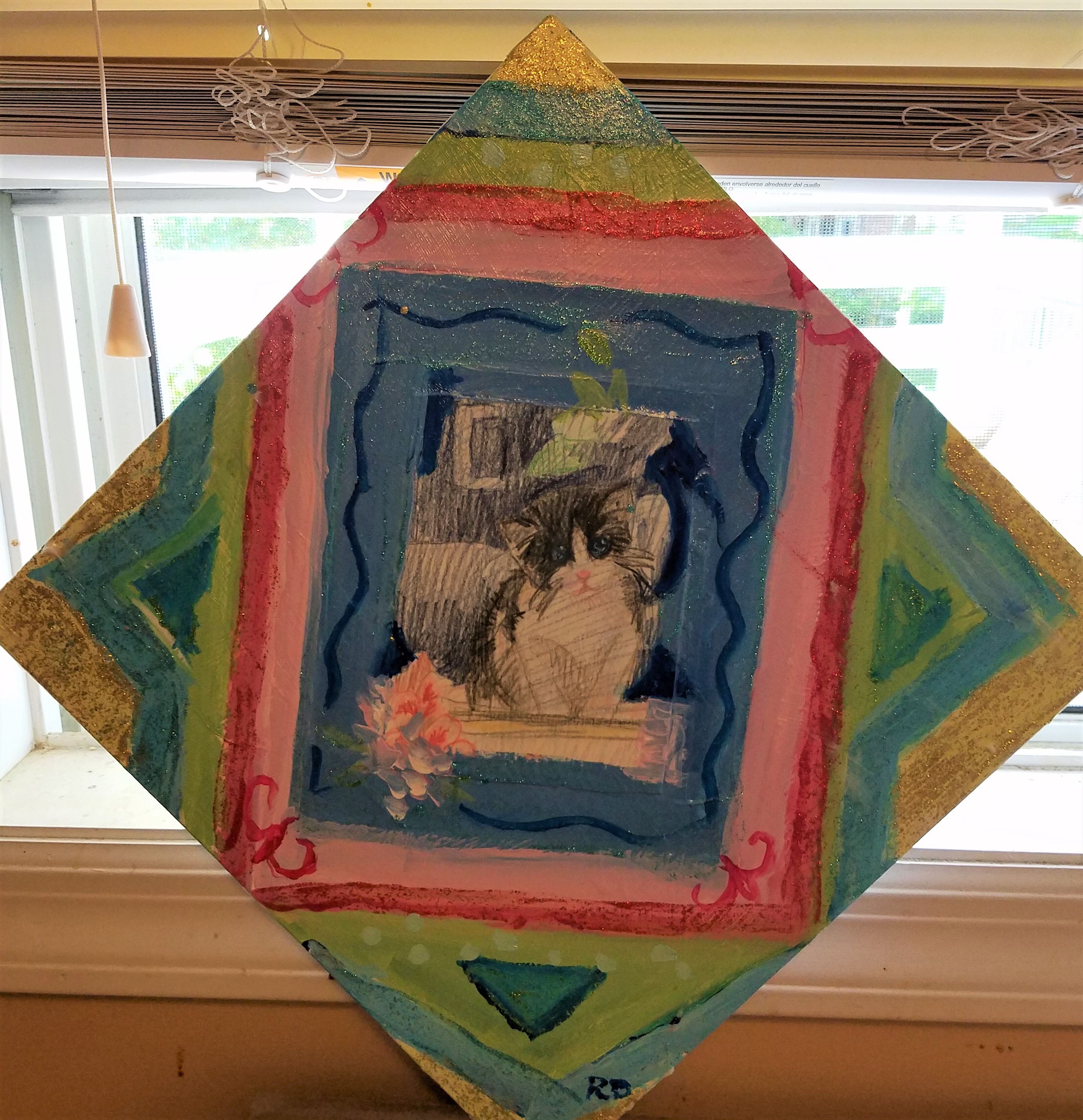 So, I’ve had this idea for a while, to integrate prints from my pictures, along with acrylic paint, on useful objects. I started with this, which is actually a real drawing with paint, on a trivet.