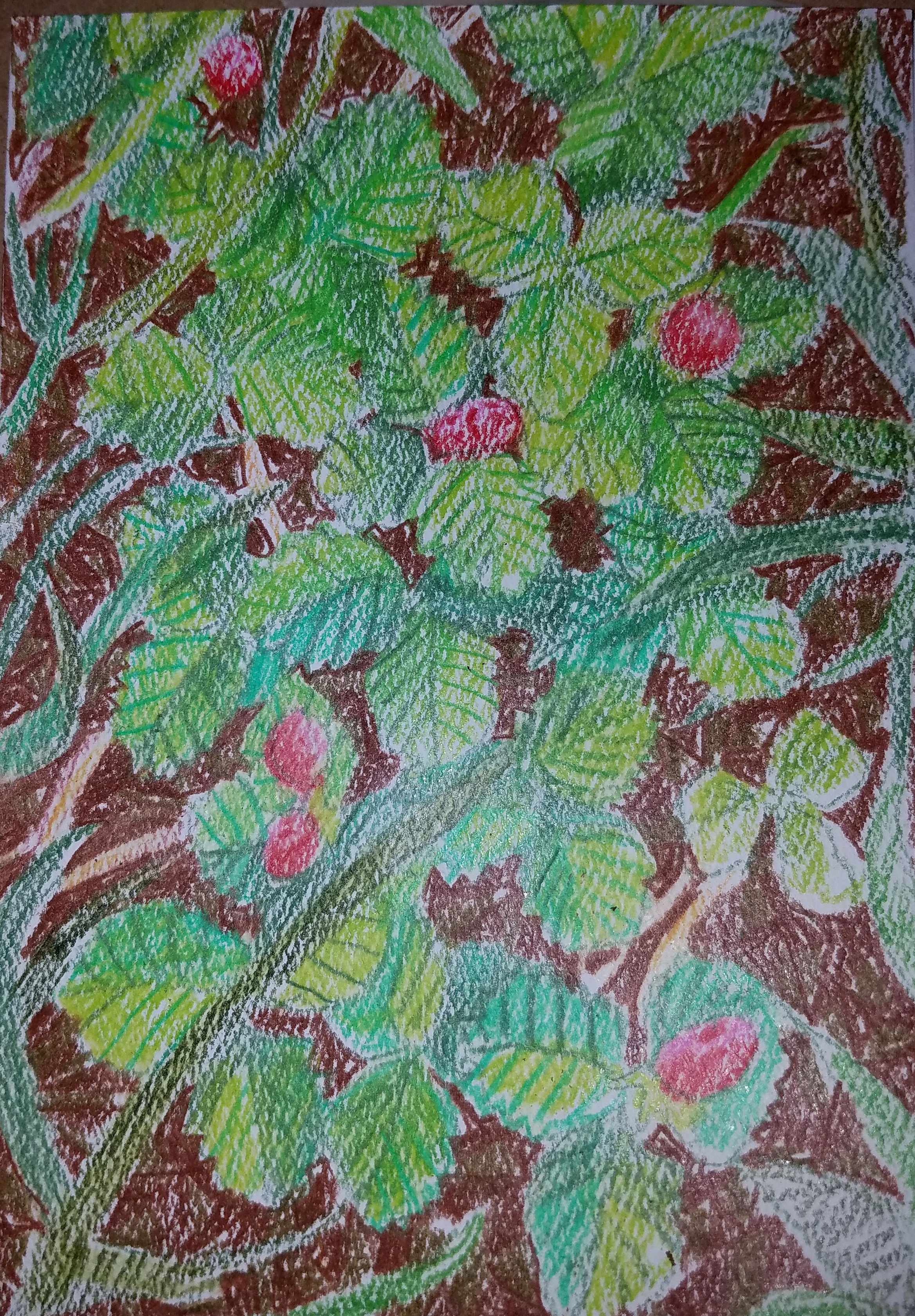 I finished the strawberry note card last night. I’m trying to decide whether it would make a good, full-size drawing or not. Here it is: