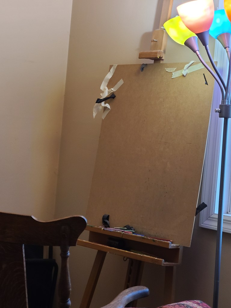 It’s been a long, productive day. But I am looking at my sad,empty easel.