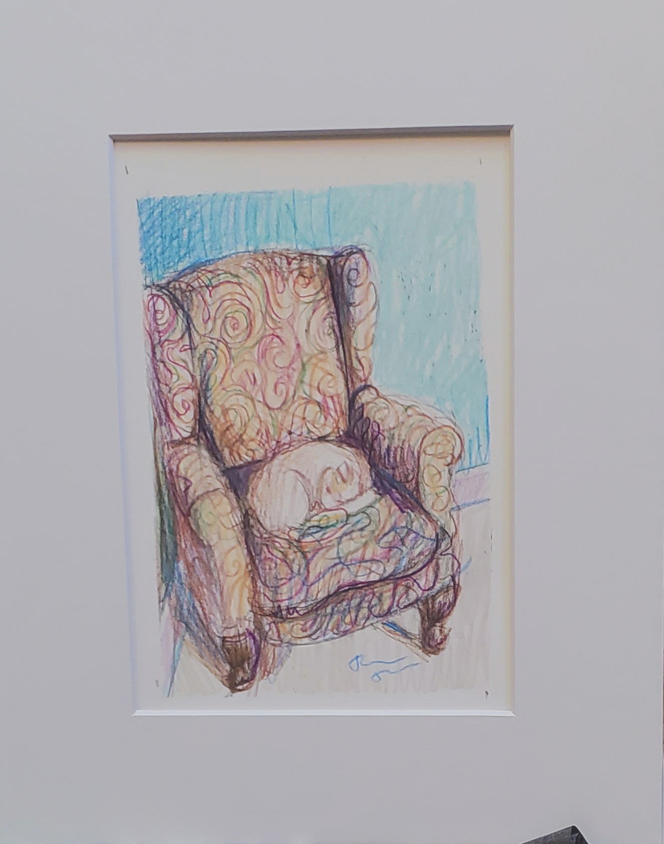 This is my former landlords chair. I look at this, I always think of him. Back in time, coming out of an artist’s slump, this was one of the first drawings I did.