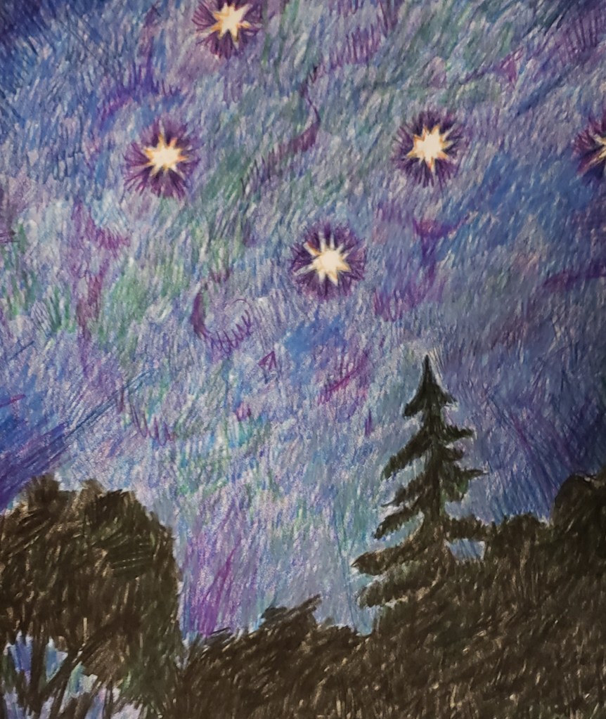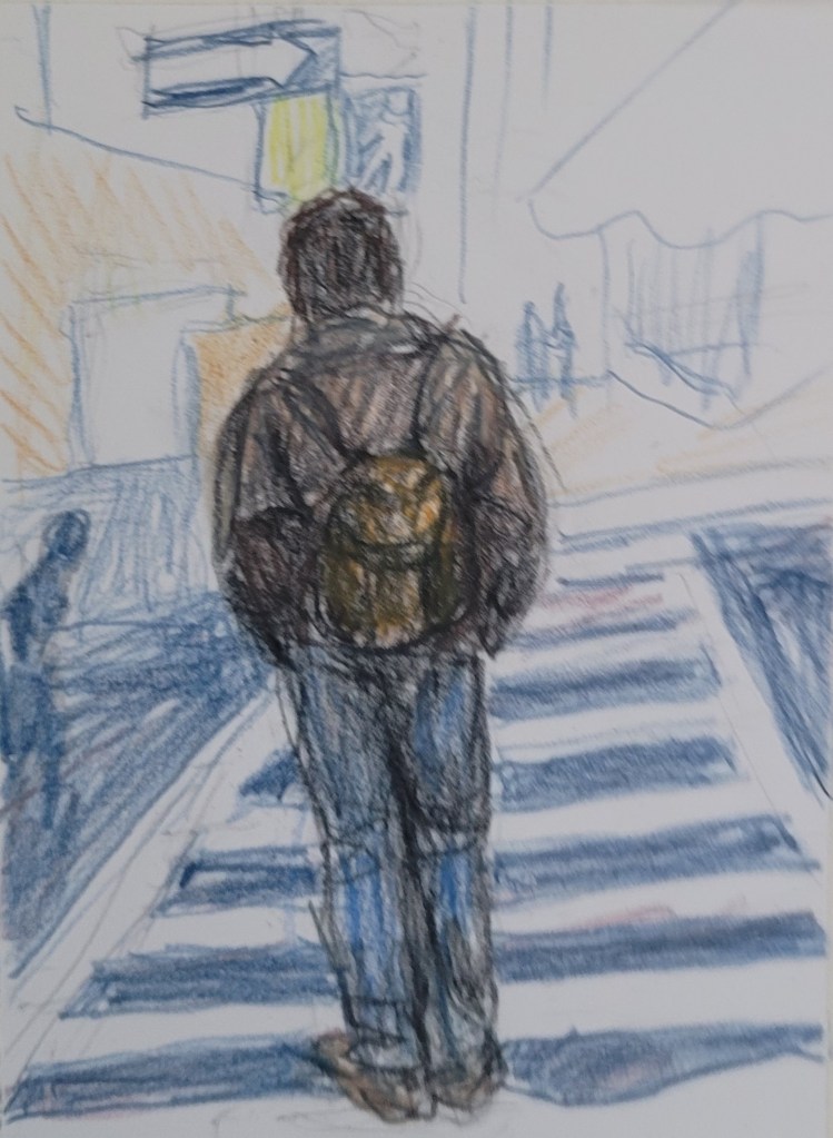 But, back to my little man. I ended up putting in a summer suburban setting. BTW, for those who might be interested, erasers don’t really erase colored pencil, but they do make highlights.