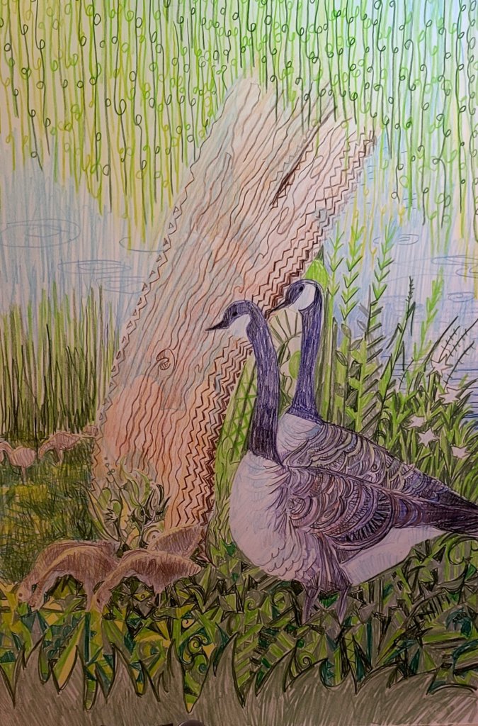 So, I’d say as a drawing , it’s moderately successful. What got me, is finding a title. By The Lake? I decided on simply “Gaggle”. It’s short, elegant, and to the point.