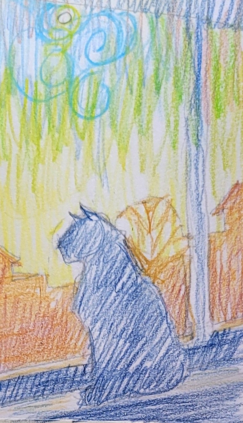 I also think I’ve come to the idea for the drawing for “Art in Action”. As promised, it has a cat.