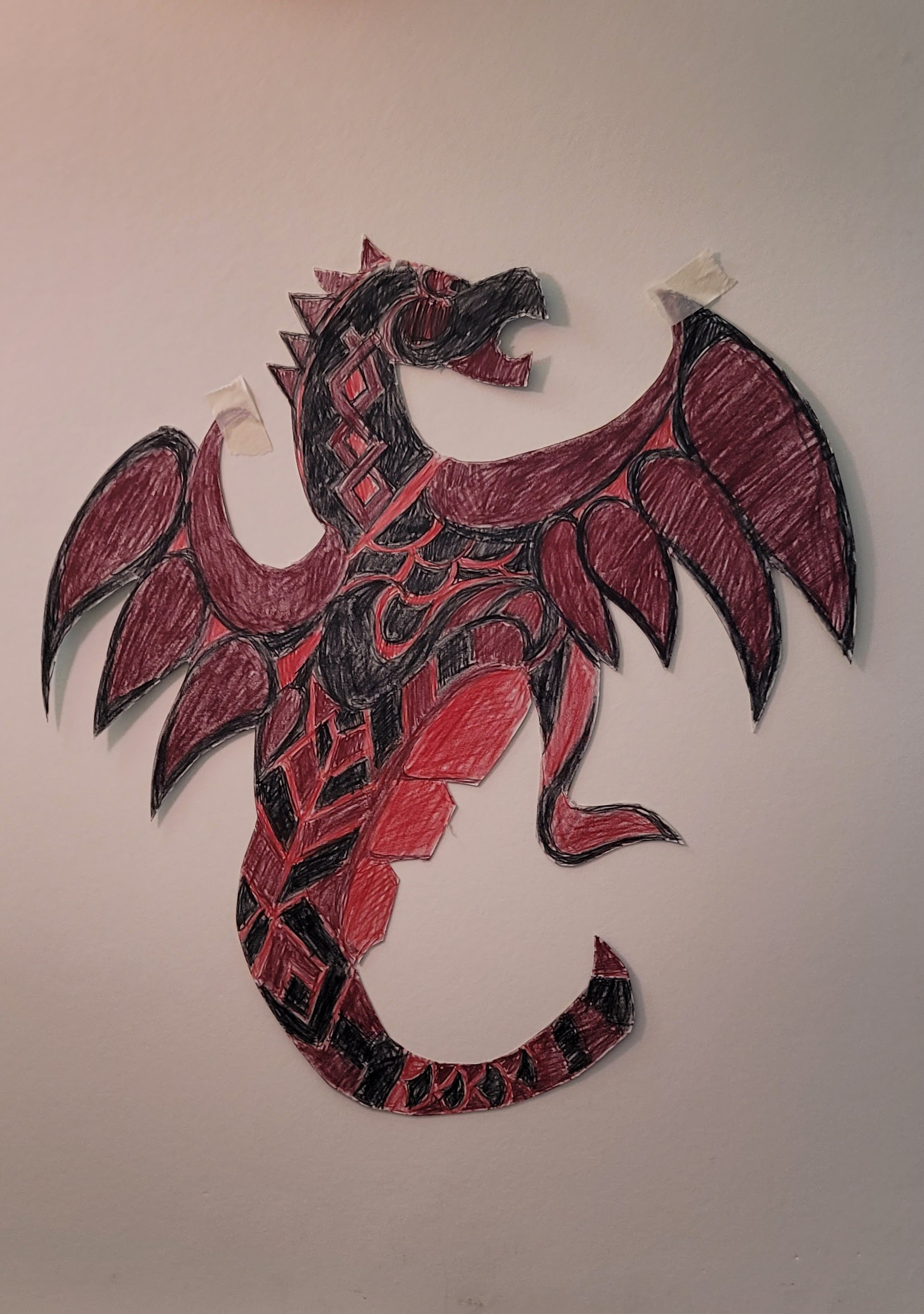 I spoke a while ago about a dragon I was making for a friend, who is I’m sure not checking out my blog. Here was the picture I did of the first side of the dragon.