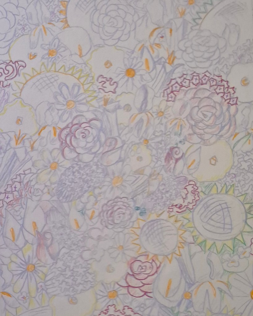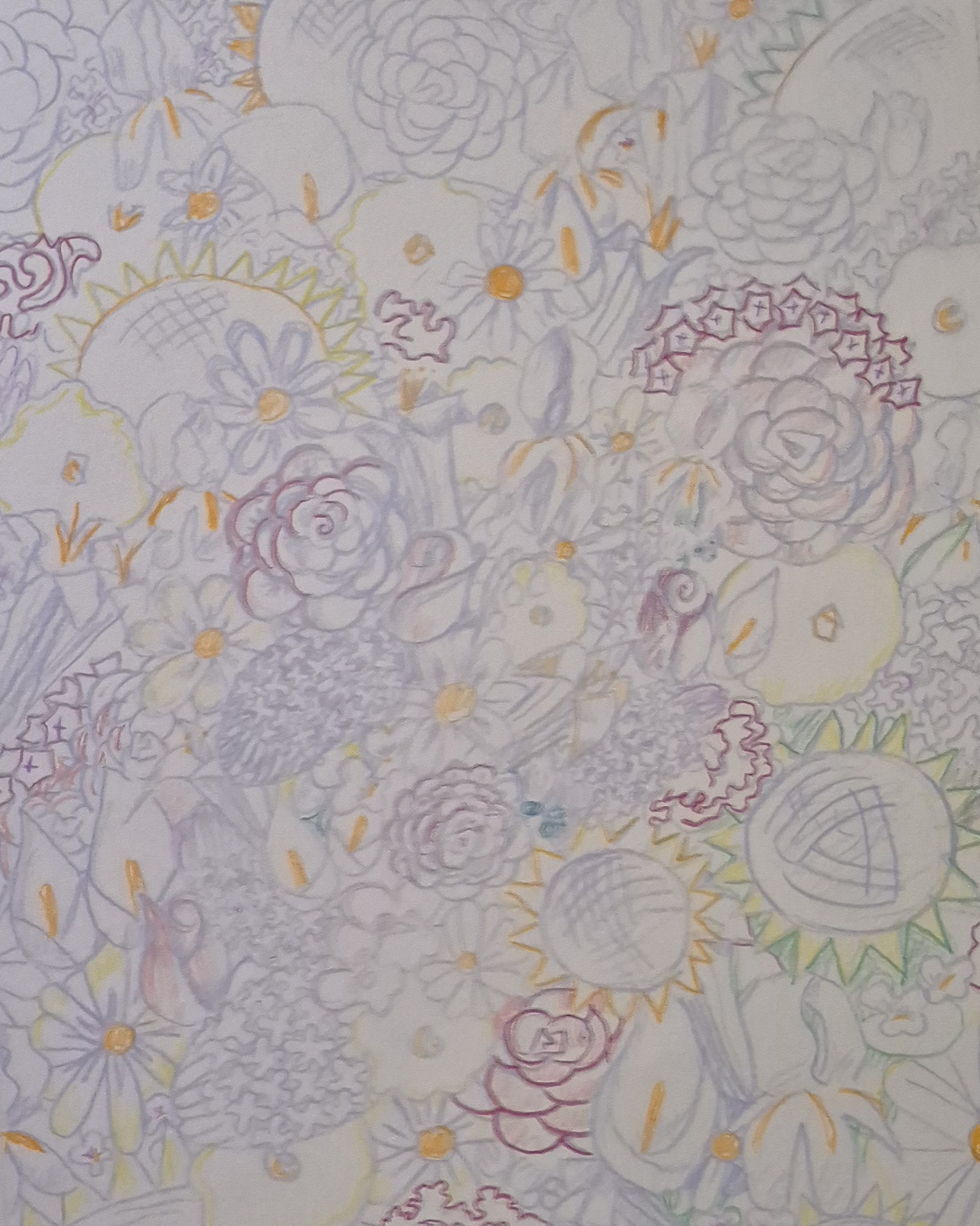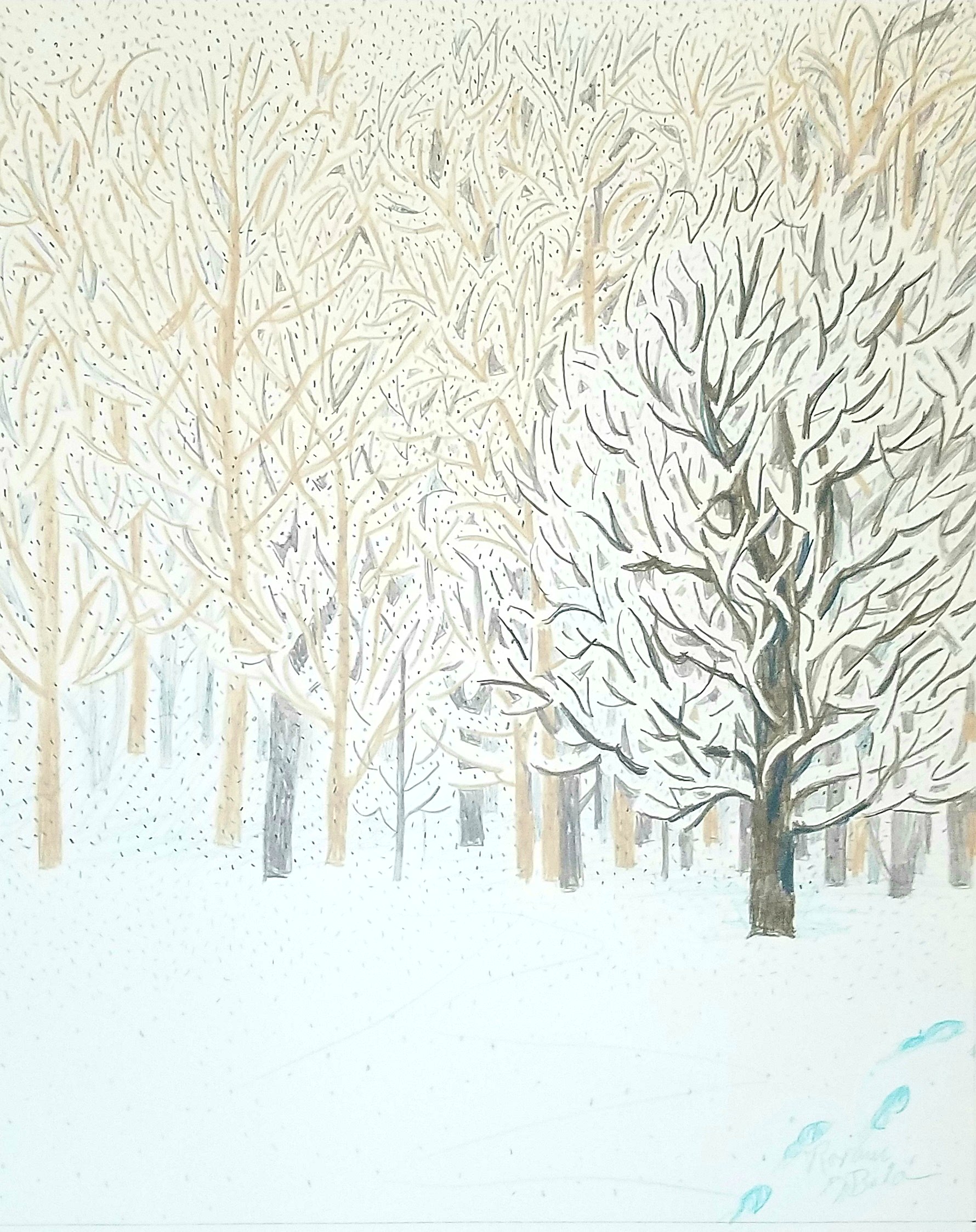 I’ve always been intrigued by works of art that are compositions of white on white. So, Ive made some attempts doing this. Mind you, with colored pencils, it’s really impossible to do completely. Maybe if I get back to working in acrylics again/